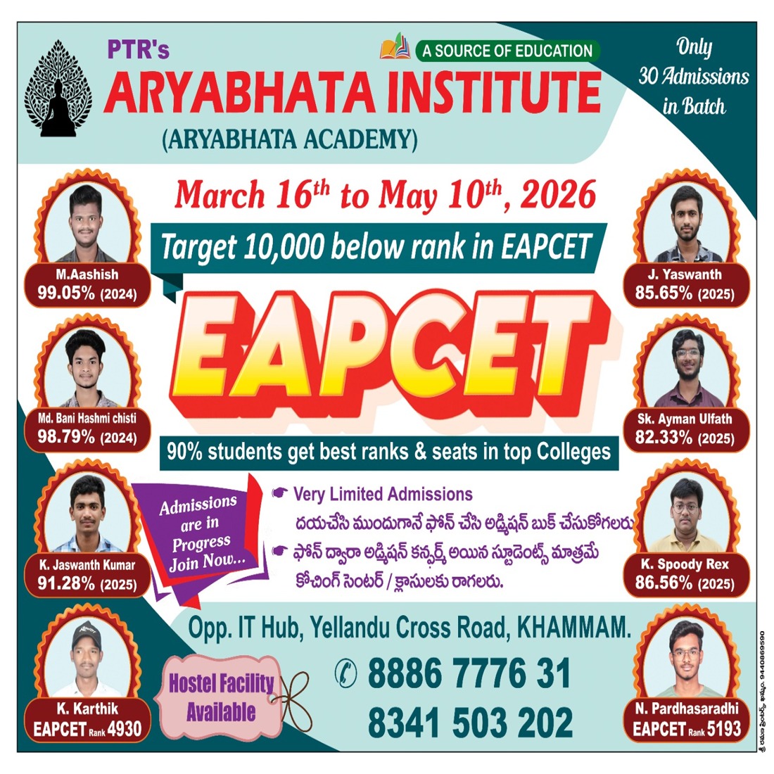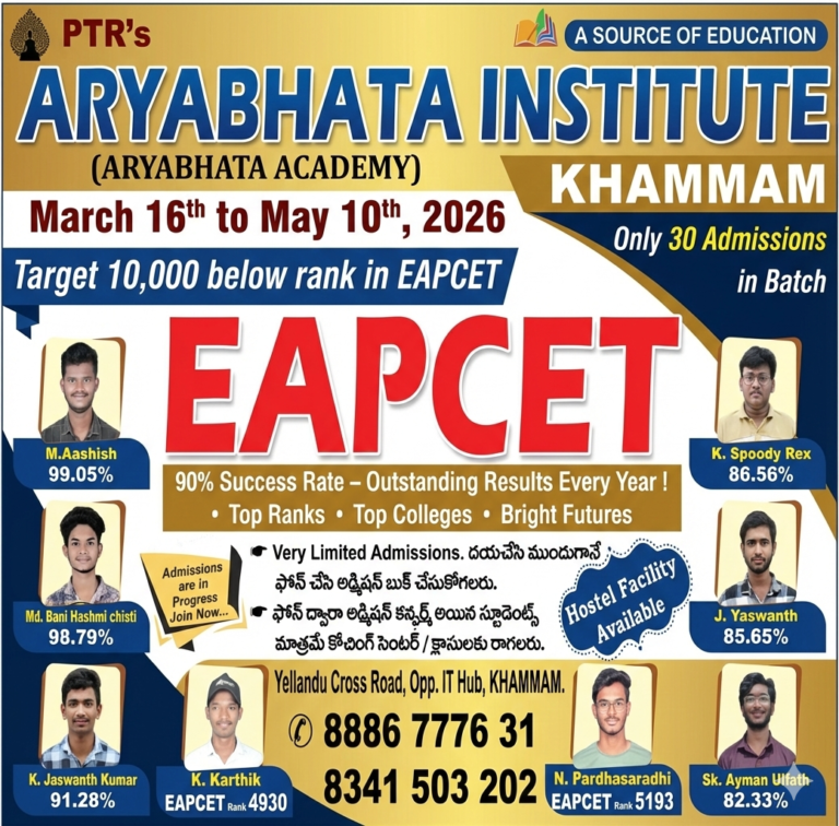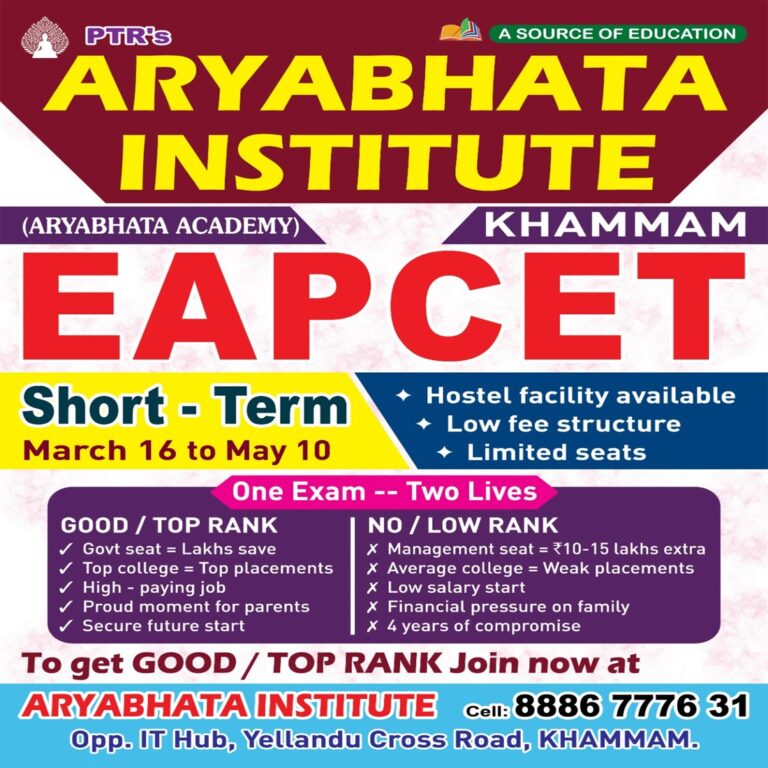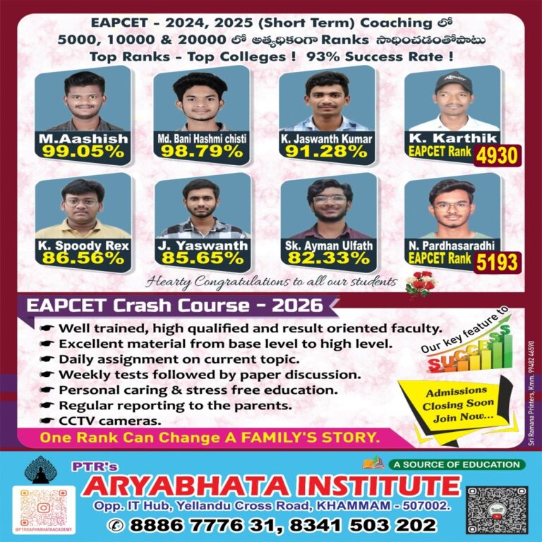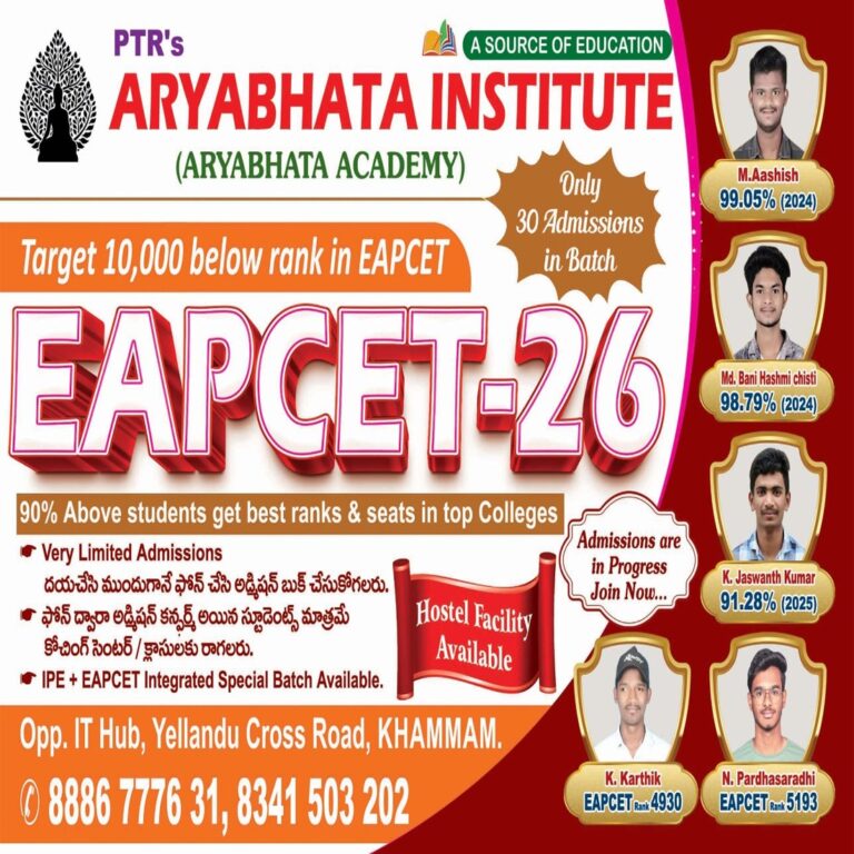 Join PTR’s Aryabhata Institute Khammam and take the first step toward academic success with expert coaching, strong concepts, and a supportive learning environment.